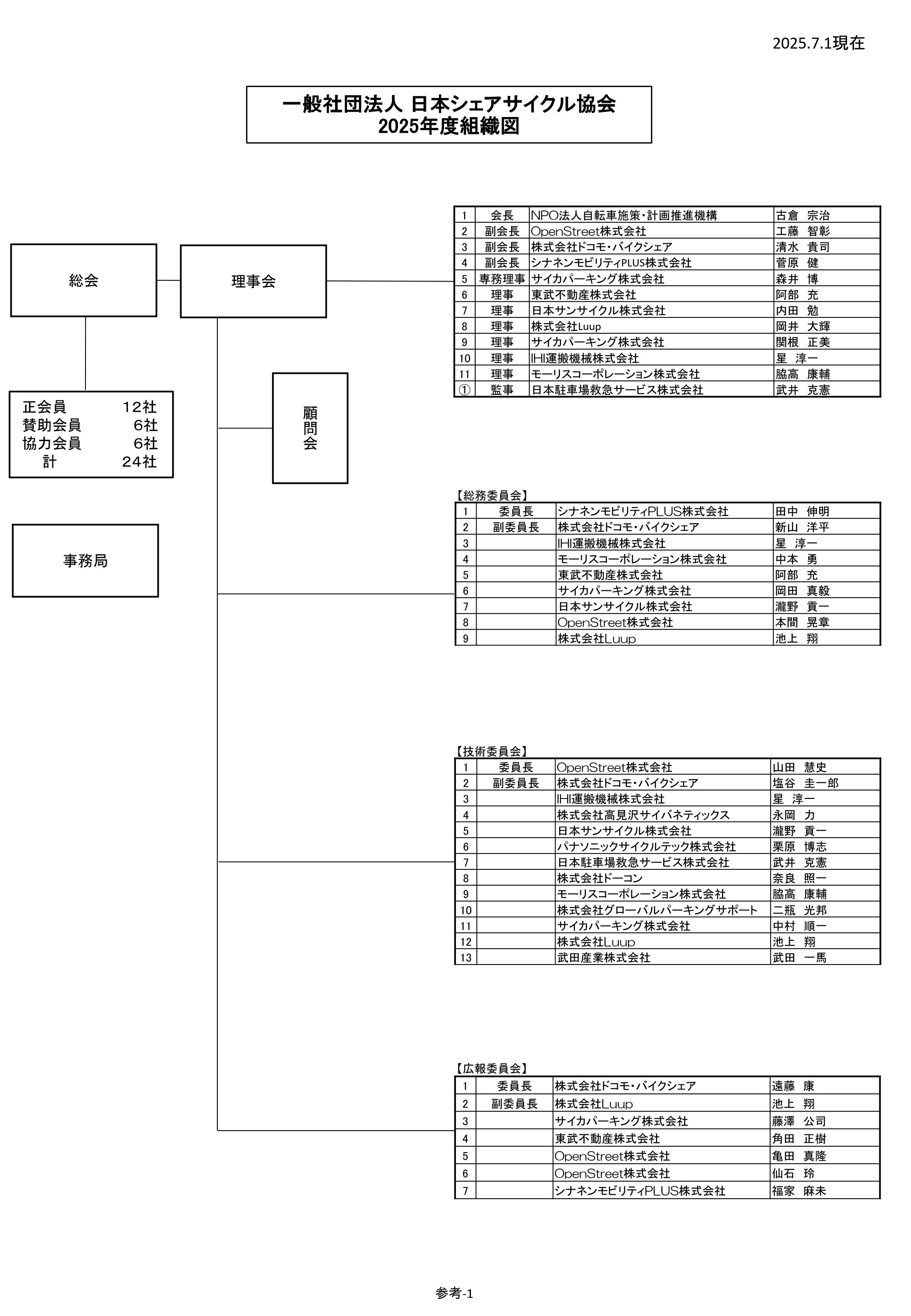 ①シェアサイクルの業界関係者が本協会の会員としてまとまり、日本のシェアサイクルの発展に寄与する。